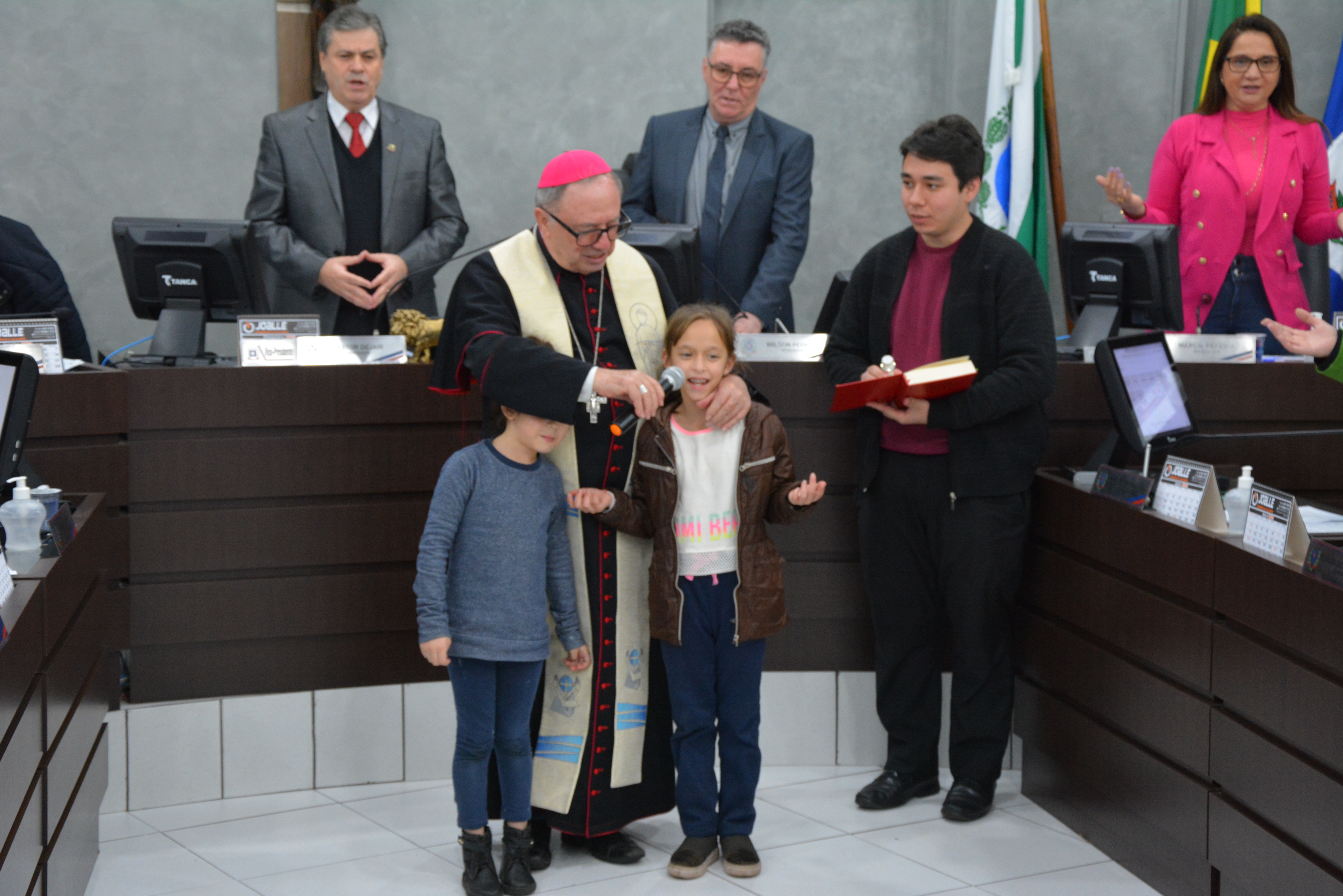 A sessão ordinária da Câmara Municipal de Cianorte realizada na última segunda-feira, 19, contou com a tribuna livre em dose dupla: o Bispo da Diocese de Umuarama Dom Frei João Mamede Filho e a diretora do CEEP Cianorte, Francieli Casassa Vieira. O presidente Wilson Pedrão (Republicanos) concedeu o espaço para que os visitantes pudessem subir ao púlpito e falar aos demais vereadores e espectadores da sessão.