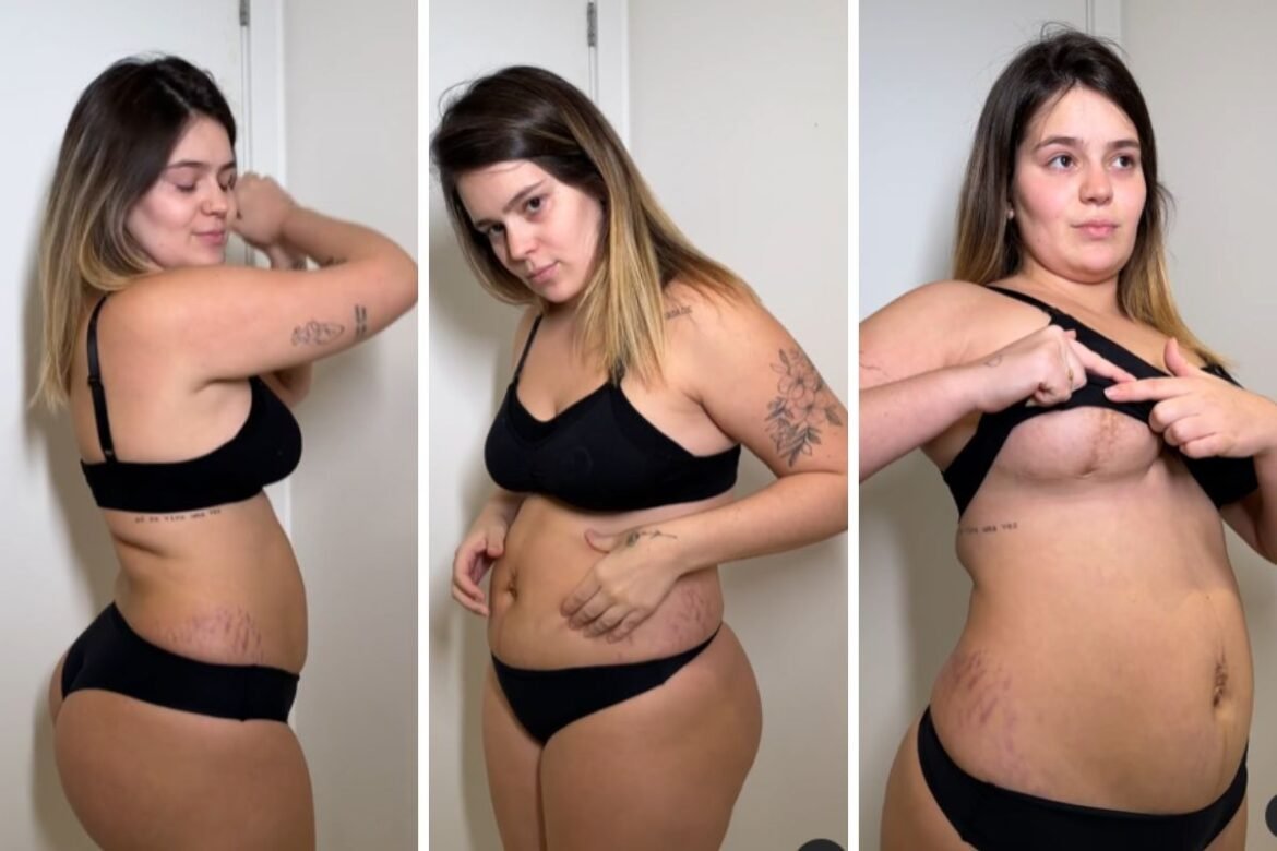 “Tour pelo corpo 1 mês pós-parto. Meu corpo e minhas cicatrizes contam uma história!”, escreveu ela na legenda da publicação.